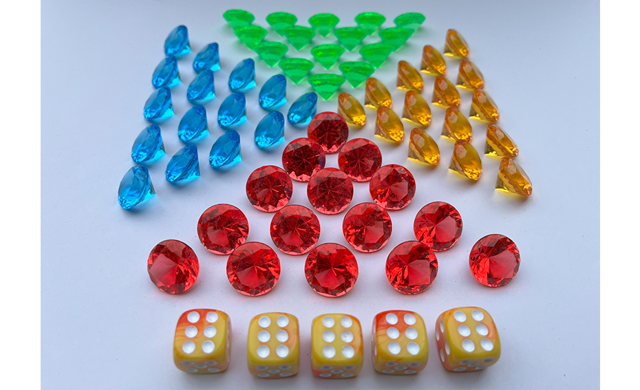 Diese 60 hochwertigen Acryldiamanten in Rot, Blau, Gelb und Grün bringen nicht nur Farbe ins Spiel, sondern auch Glanz und Charakter. Mit 15 Steinen pro Farbe sind sie mehr als nur Spielsteine – ein Statement für Stil und Qualität.